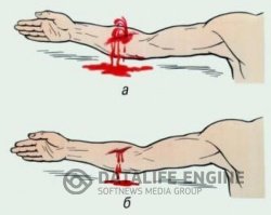 Наиболее опасным является артериальное кровотечение. Изливающаяся при нем кровь ярко- красного цвета, выбрасывается сильной пульсирующей струей. Артериальное кровотечение обычно бывает очень интенсивным и при нем теряется большое количество крови. При повреждении больших артерий больной может потерять в течение нескольких секунд такое количество крови, которое может оказаться смертельным для него.