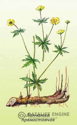 В народной медицине широко используется настойка корневища лапчатки прямостоячей при различных желудочно-кишечных заболеваниях.