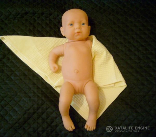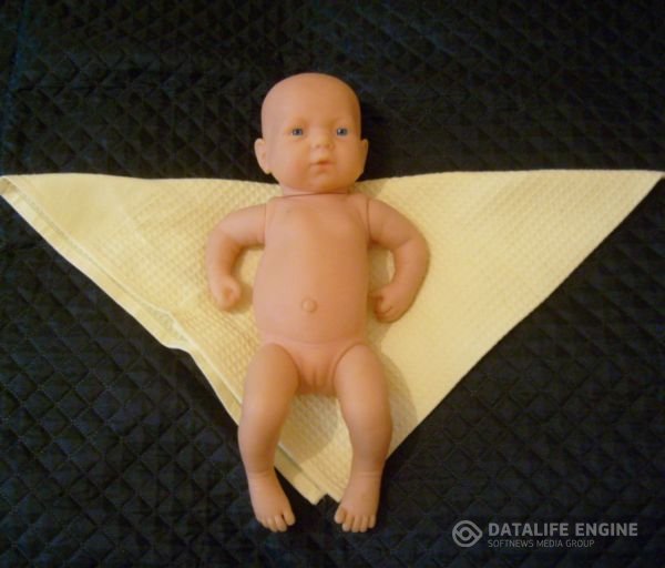 1. Зафиксируйте ручки крохе. Положите малыша на пеленку, предварительно сложив ее по диагонали. Фото 1. Затем взяв свободный край пеленки, заверните его под спинку ребенка, накрыв ручку. Фото 2. Так же поступите и с другой рукой. Фото 3. Это необходимо сделать, так как ребенок может выбить из рук флакончик с каплями. Можно просто запеленать ребенка.